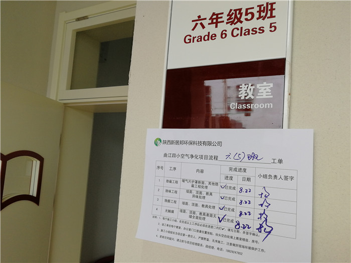 作為除甲醛領域專業公司,陜西新居邦環保科技以產品環保化、服務專業化、施工標準化、效果統一化的企業經營理念獲得市場高度認可,獨家中標曲江新區新建成投入使用的曲江第四小學,曲江小學、曲江中學(原暫定名:航天中小學曲江分校)、曲江第二小學校舍擴建工程的室內空氣凈化暨除甲醛項目,本次總服務面積為72000平方,新居邦環保克服工期緊、任務重等多重困難,圓滿地完成了既定任務目標!給孩子們最佳的呼吸空間,這是新居邦人的莊嚴承諾!