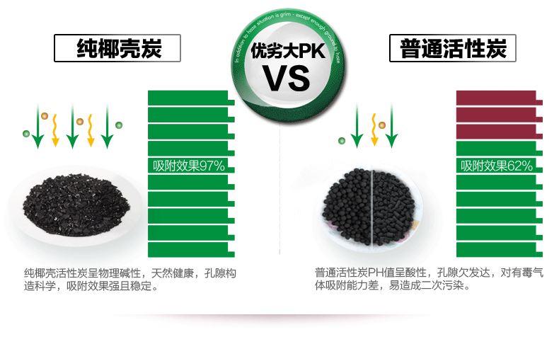 室內清除甲醛方法2、植物吸甲醛法 植物在裝修清除甲醛過程中使用非常普遍,但并不是所有綠植都適合清除甲醛,實踐證實,吸附甲醛效果比較好的綠植有龜背竹、吊蘭、虎尾蘭等,這些綠植清除甲醛的能力更強,新家不可不養這些植物,既能去除甲醛,又能美化環境,兩全齊美。 室內清除甲醛方法3、活性炭吸附法 活性炭除異味效果顯著,這是因為活性炭具有多孔隙結構,能不斷吸附甲醛、苯等有機物分子,不過,活性炭吸附甲醛使用一段時間后會飽和,一到兩周后拿出來暴曬把吸附的甲醛脫附出來,否則會又釋放出來造成二次污染。椰殼來活性炭吸附效果最好。