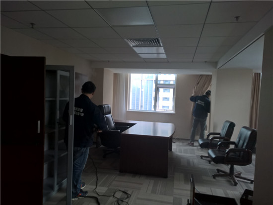 西安銀行高新總部辦公大樓室內空氣凈化,辦公室內地毯、顆粒板辦公家具是甲醛釋放重點。公司采取高分除醛凈味技術快速清除家具中的甲醛殘留。以下是除甲醛施工現場:
