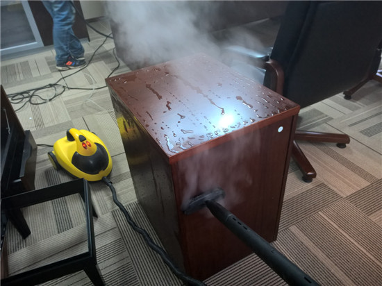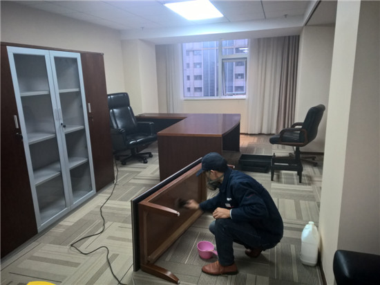 我公司施工人員對油漆味家具表面進行高溫熏蒸除油漆味作業