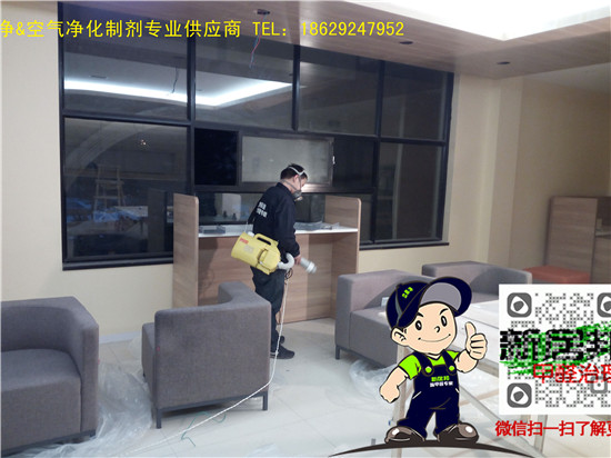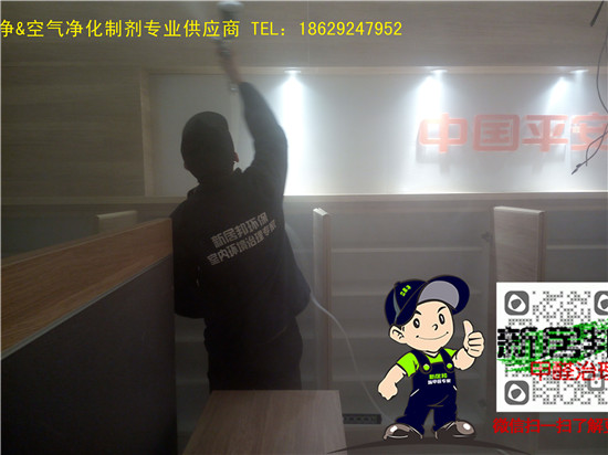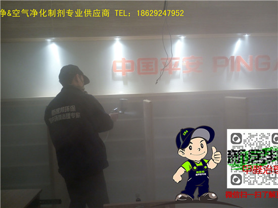 中國(guó)平安延安分公司三層辦公大樓共計(jì)1500余平方,經(jīng)過(guò)重裝升級(jí),室內(nèi)裝修異味比較明顯,新居邦除甲醛公司承接了本次室內(nèi)空氣凈化除甲醛工程,以下是施工現(xiàn)場(chǎng)照片: