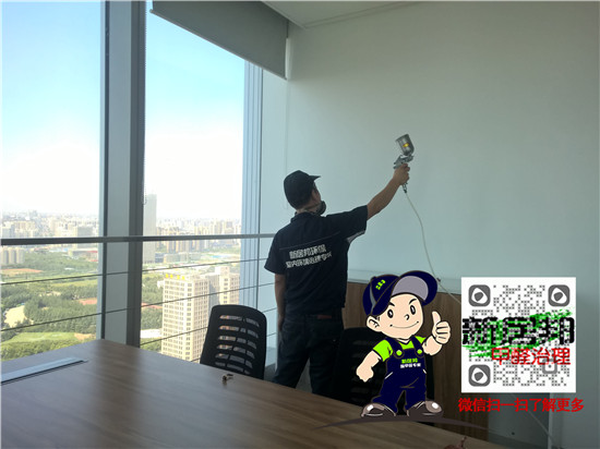 本工程為位于高新綠地中心45層的陜西恒通果汁集團股份有限公司辦公室,整體除甲醛凈化施工面積為2100平方,全密封玻璃幕墻設計,通風情況不佳,室內異味明顯,新居邦環保科技的專業技術服務能力贏得了集團公司領導的認可,本次辦公室甲醛治理,室內空氣凈化工程共2天,經過處理以后室內空氣質量獲得極大改善,順利通過CMA第三方驗收,以下是部分施工現場照片